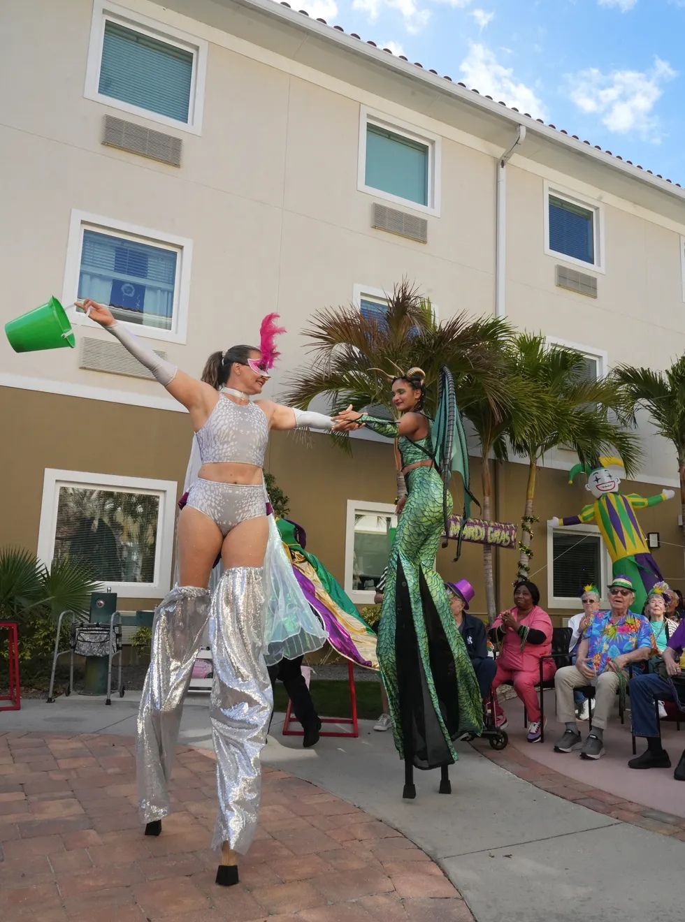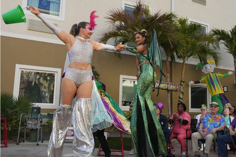 At this senior living community's Mardi Gras party, "laissez les bon temps rouler" (let the good times roll) was the phrase of the day. Watch Mardi Gras magic unfold at Chateau Madeleine as acrobatic performers bring high-energy entertainment to our courtyard. This blog highlights vibrant resident interaction, festive celebration, and the engaging, resort-style senior living lifestyle that makes our community truly exceptional. Experience the joy, connection, and unforgettable moments that define life at our community.